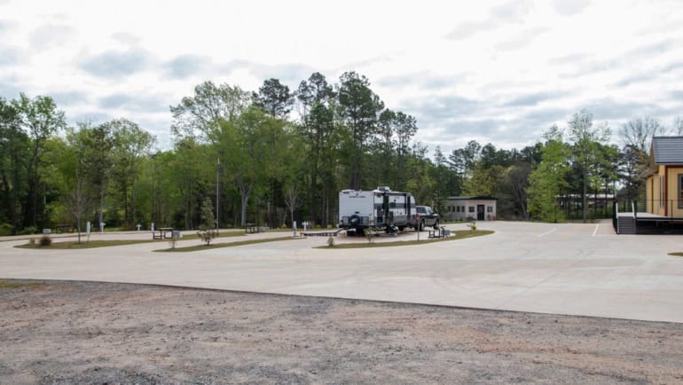 Back in 2023, we were making our way from Indiana to the Houston area, towing our old travel trailer behind a gas-powered Ram 2500. Anyone who’s traveled long distances in a gas rig knows your range isn’t always ideal — so we needed a good overnight stop somewhere in East Texas before the final stretch.